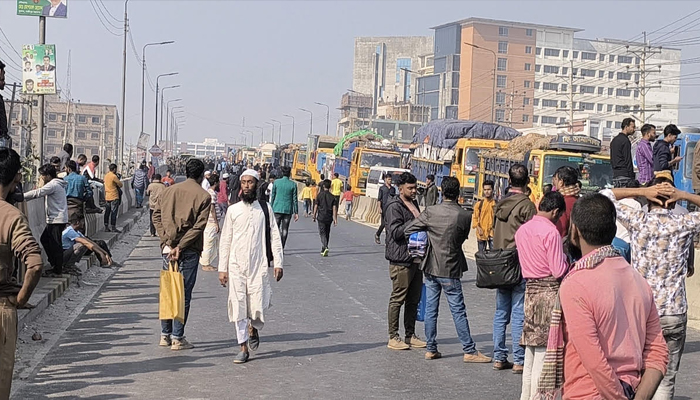 বন্ধ কারখানা খুলে দেওয়ার দাবিতে ঢাকা-টাঙ্গাইল মহাসড়ক অবরোধ