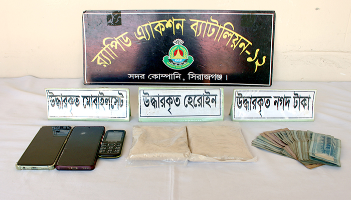 সিরাজগঞ্জে হেরোইনসহ দুই মাদক ব্যবসায়ী গ্রেফতার