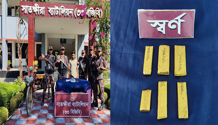 সাতক্ষীরায় সীমান্তে ৬টি স্বর্ণের বারসহ চোরাকারবারি আটক