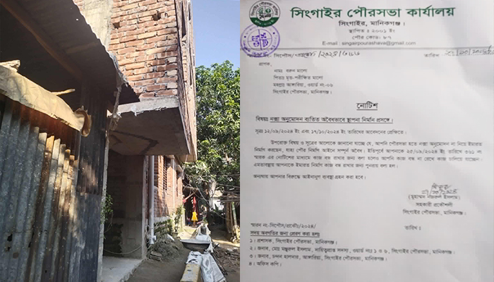 সিংগাইরে পৌরসভার অনুমতি ছাড়া বাড়ি নির্মাণের অভিযোগ