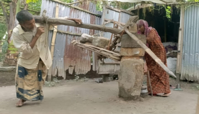 সিরাজগঞ্জে গরু নেই, দম্পতির কাঁধে ঘানির জোয়াল