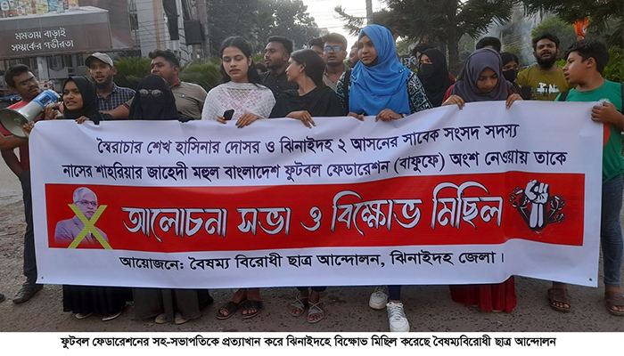 ঝিনাইদহে ফুটবল ফেডারেশনের সহ-সভাপতিকে প্রত্যাখান করে বিক্ষোভ মিছিল