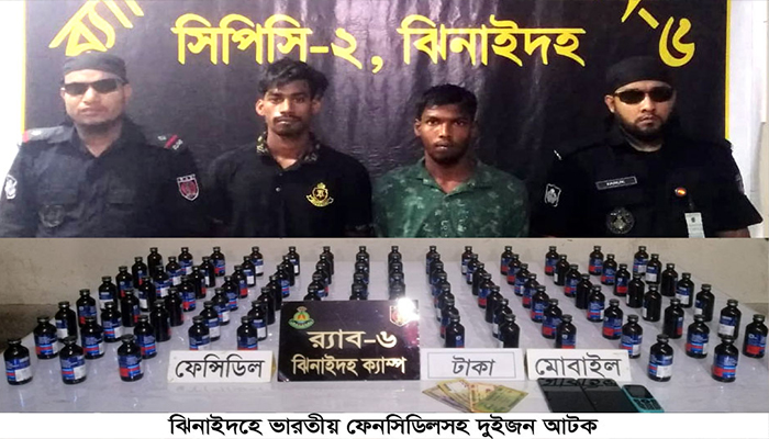 ঝিনাইদহে ভারতীয় ফেনসিডিলসহ আটক ২