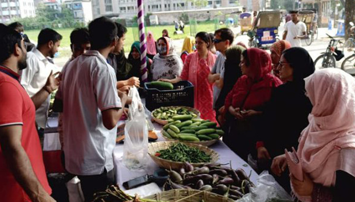 সাশ্রয়ী দামে সবজি কিনতে শিক্ষার্থীদের দোকানে ভিড় করছে মানুষজন