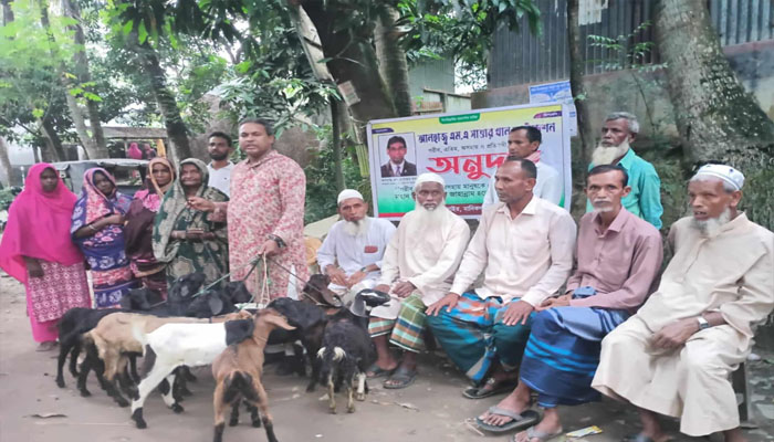 সিংগাইরে দুস্থদের মাঝে ছাগল বিতরণ