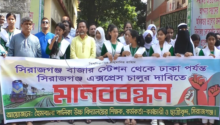 সিরাজগঞ্জ এক্সপ্রেস ট্রেন চালুর দাবীতে শিক্ষার্থীদের মানববন্ধন