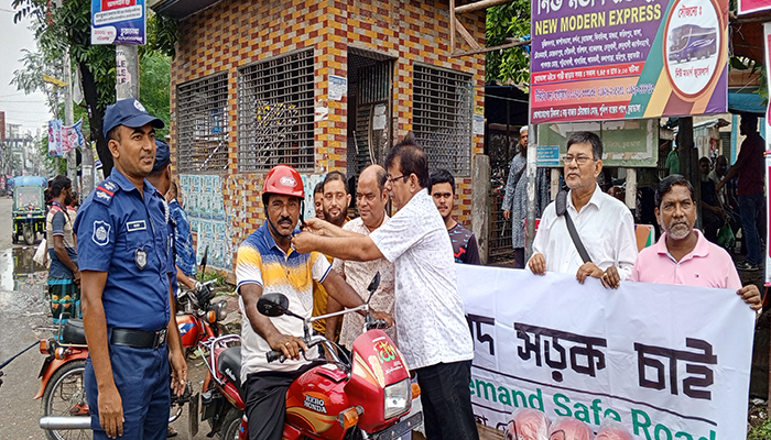 চুয়াডাঙ্গায় বাইক চালকদের মাঝে হেলমেট বিতরণ