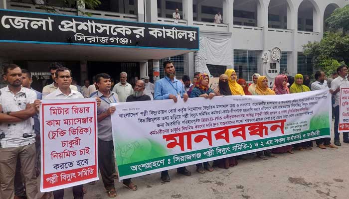 সিরাজগঞ্জে পল্লী বিদ্যুৎ সমিতির কর্মকর্তা-কর্মচারিদের মানববন্ধন