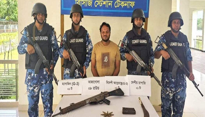 টেকনাফে বিদেশি অস্ত্র ও গোলাবারুদসহ যুবক আটক