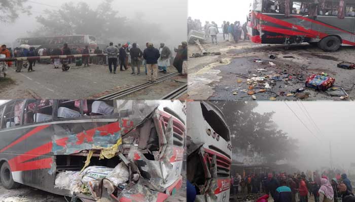 সিরাজগঞ্জে চলন্ত ট্রেনে বাসের ধাক্কায় নিহত ১,আহত ২৫