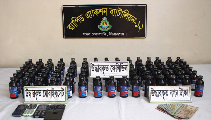 মোটরসাইকেলে ফেনসিডিল পাচারকালে সিরাজগঞ্জে দুই মাদক কারবারি আটক