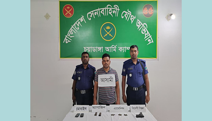 চুয়াডাঙ্গায় যৌথবাহিনীর অভিযানে বিদেশি পিস্তলসহ গ্রেফতার ১