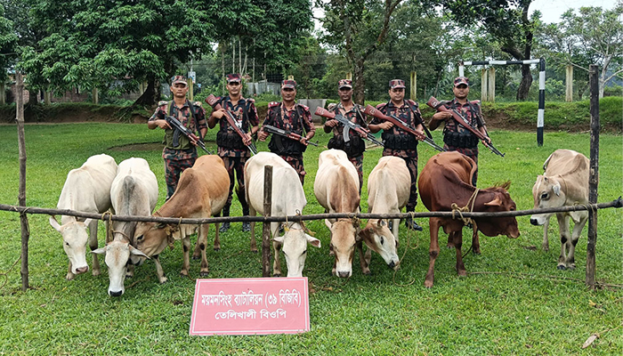 হালুয়াঘাট সীমান্তে ভারতীয় ৮ গরু জব্দ, পালালো চোরাকারবারিরা