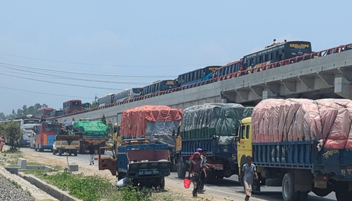 যমুনা সেতুর দুই প্রান্তে ৩০ কিলোমিটার যানজট, দুর্ভোগে ঘরমুখো মানুষ