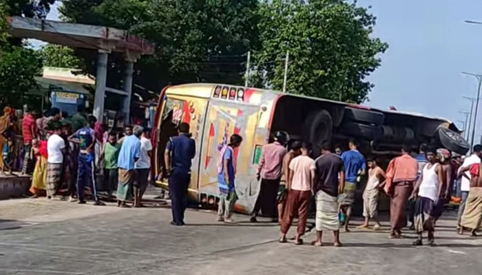 ময়মনসিংহে চলন্ত বাস নিয়ন্ত্রণ হারিয়ে উল্টে হেলপার নিহত,আহত ১৯