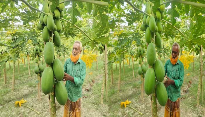 শেরপুরে হায়দার আলীর “হায়দার পেঁপের” বাম্পার ফলন