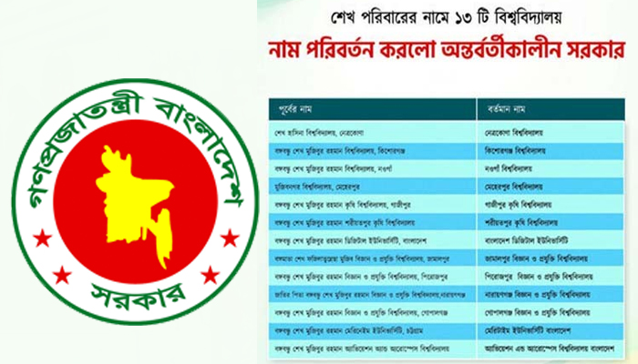 ১৩ বিশ্ববিদ্যালয় থেকে শেখ পরিবারের নাম বাদ দিয়ে গেজেট জারি