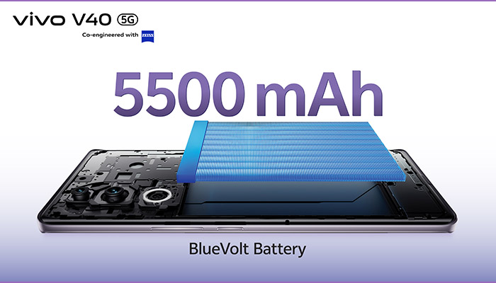 ভিভো ভি৪০ ফাইভজি, হালকা ওজনে শক্তিশালী ব্যাটারি