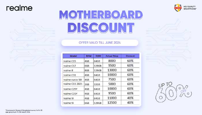 মাদারবোর্ড রিপ্লেসমেন্টে রিয়েলমি গ্রাহকরা পাচ্ছেন ৬০% ছাড়