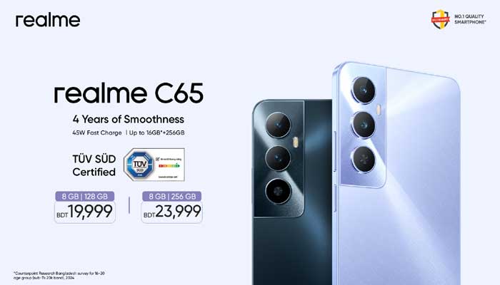 ৪ বছরের স্মুদ পারফরম্যান্স নিয়ে আসছে রিয়েলমির স্মার্টফোন সি৬৫