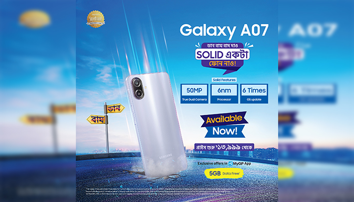 সাশ্রয়ী দামে ফ্ল্যাগশিপ ফিচার সমৃদ্ধ গ্যালাক্সি এ০৭ উন্মোচন করল স্যামসাং