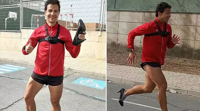 হাই হিল পরে ১০০ মিটার দৌড়িয়ে গিনেস বুকে স্প্যানিশ যুবক