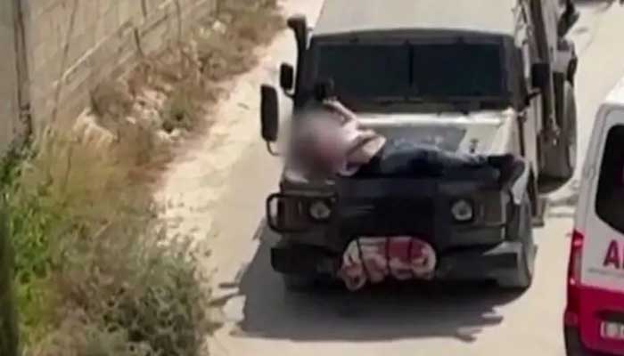 গুলিবিদ্ধ ফিলিস্তিনিকে জিপের সামনে বেঁধে নিয়ে গেল ইসরায়েলি বাহিনী