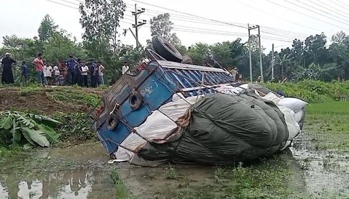 ফুলপুরে ব্যবসায়ীকে চাপা দিয়ে নিয়ন্ত্রণ হারিয়ে ট্রাক খাদে