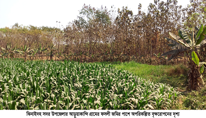 ঝিনাইদহে ফসলী জমির পাশে অপরিকল্পিত বৃক্ষরোপনে ফলন হ্রাসের আশংকা