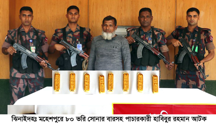 মহেশপুরে ৮০ ভরি সোনার বারসহ পাচারকারী আটক