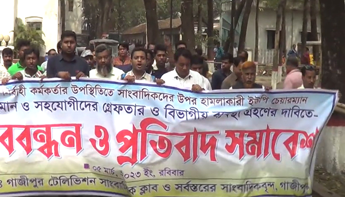 গাজীপুরে সাংবাদিকের উপর হামলায় বিক্ষোভ মিছিল ও মানববন্ধন
