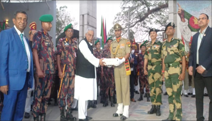 বেনাপোল নোম্যান্সল্যান্ডে বিজিবি-বিএসএফ জয়েন্ট রিট্রিট সিরিমনি প্যারেড অনুষ্ঠিত