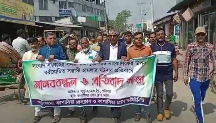 গাজীপুরে সাংবাদিকের উপর হামলায় মানববন্ধন ও প্রতিবাদ মিছিল