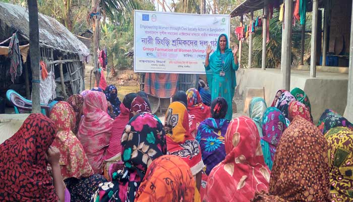 জলবায়ু ঝুঁকিপূর্ণ এলাকায় নারী চিংড়ি শ্রমিকদের অধিকার প্রতিষ্ঠায় দল গঠন