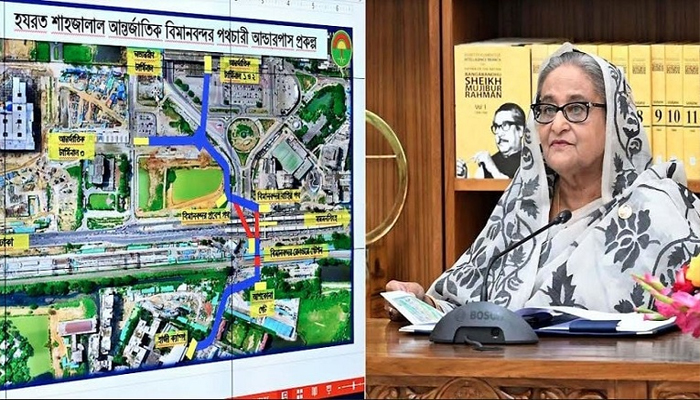 বিমানবন্দরে নির্মাণাধীন আন্ডারপাসের নকসা দেখলেন প্রধানমন্ত্রী
