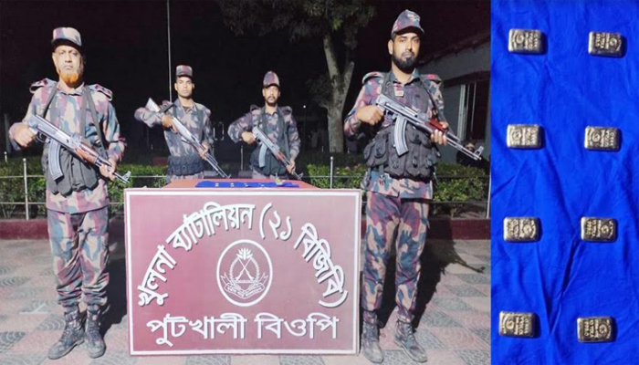 পুটখালি সীমান্ত থেকে ৮টি স্বর্ণের বার উদ্ধার