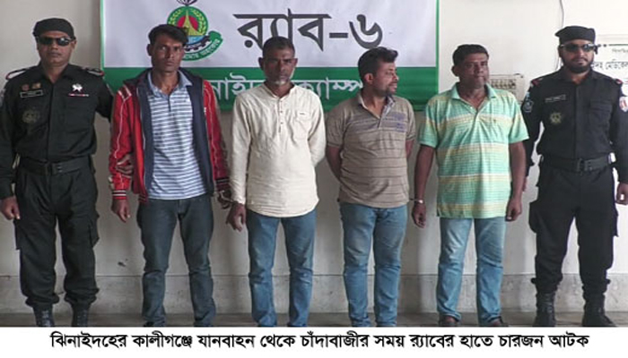 কালীগঞ্জে যানবাহন থেকে চাঁদাবাজীর সময় আটক ৪