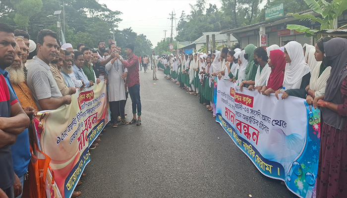 নোয়াখালী-৪ আসন থেকে দুটি ইউনিয়ন বাদ দেওয়ার প্রতিবাদে বিক্ষোভ ও মানববন্ধন