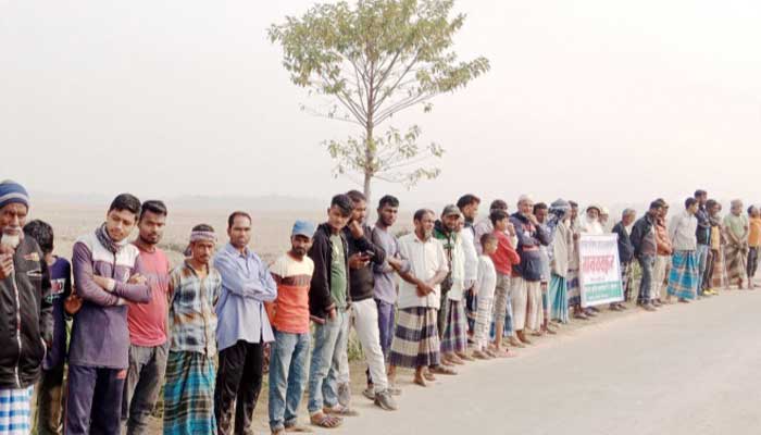 বোরো চাষে নালার দাবিতে মানববন্ধন