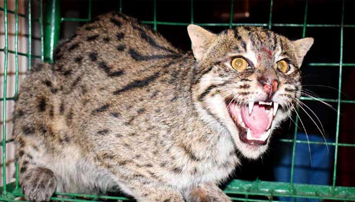 কৃষকের পাতা ফাঁদে ধরা পড়লো মেছোবাঘ!