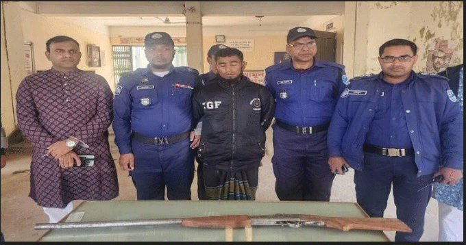 বেলাবতে ১৫ মামলার আসামী অস্ত্রসহ গ্রেপ্তার
