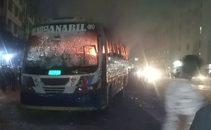 গাজীপুরে শ্রমিক নিহতের গুজবে দুটি বাসে আগুন