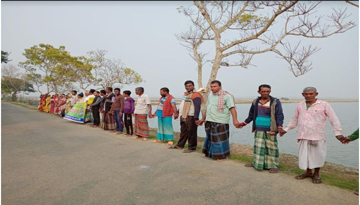 সাতক্ষীরায় সংখ্যালঘু সম্প্রদায়ের বাড়ী ঘর ভাঙচুর ও নির্যাতন, জড়িতদের গ্রেপ্তারের দাবিতে মানববন্ধন
