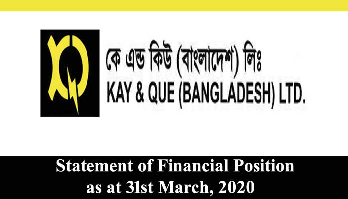 Statement of Financial Position as at 31st March, 2020