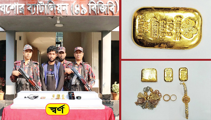 যশোরে স্বর্ণেরবার ও স্বর্ণালংকারসহ পাচারকারী আটক
