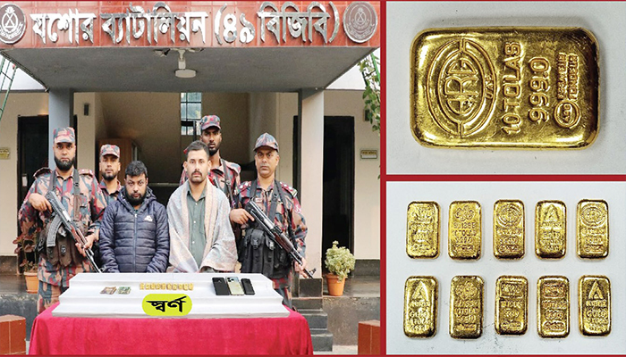 যশোরে ১০টি স্বর্ণের বারসহ দুই পাচারকারী আটক