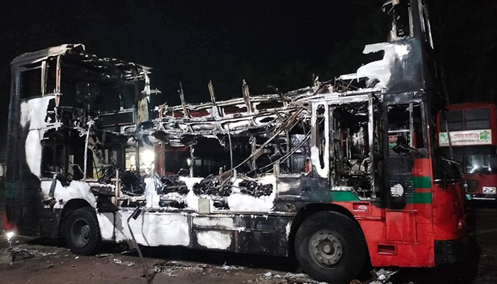 নোয়াখালীতে গভীর রাতে বিআরটিসির ২ বাসে আগুন