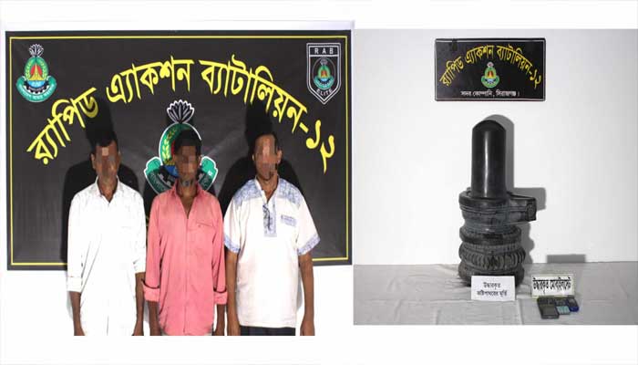 সিরাজগঞ্জে র্যাবের অভিযানে কষ্টি পাথরের শিবলিঙ্গসহ তিন পাচারকারী গ্রেফতার