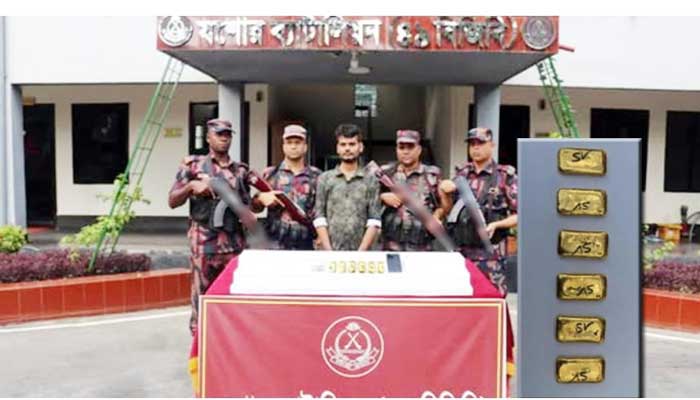 যশোরে ছয়টি স্বর্ণের বারসহ পাচারকারী আটক