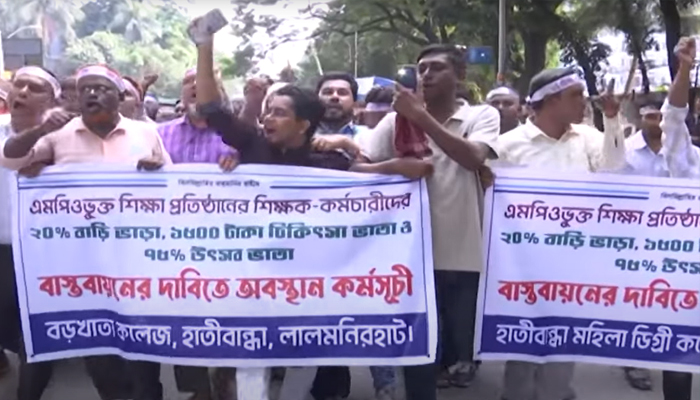 শাহবাগে এমপিওভুক্ত শিক্ষকদের অবরোধ, যানচলাচল বন্ধ